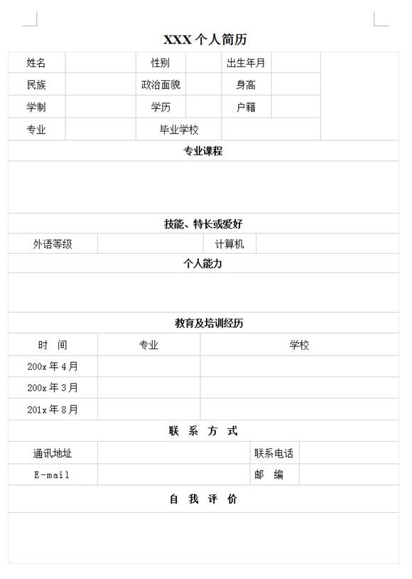 大學(xué)畢業(yè)生個(gè)人簡歷表