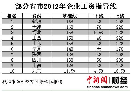 10省市2012年企業(yè)工資指導(dǎo)線一覽