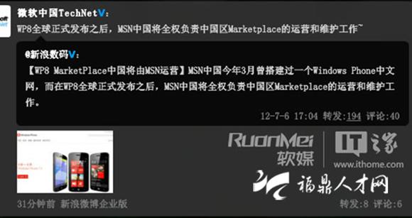 MSN中國(guó)今年3月曾搭建過一個(gè)Windows Phone中文網(wǎng),而在WP8全球正式發(fā)布之后,MSN中國(guó)將全權(quán)負(fù)責(zé)中國(guó)區(qū)Marketplace的運(yùn)營(yíng)和維護(hù)工作。