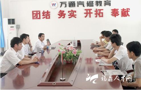 參觀完學(xué)校后,鄧經(jīng)理在廣州萬通汽修學(xué)校會議室召開了宣講會。這次參加宣講會的學(xué)生是5月底畢業(yè)的學(xué)生,因為該校4月以及5月中旬畢業(yè)的學(xué)生都已經(jīng)被相關(guān)的企業(yè)預(yù)定了,可見這所學(xué)校學(xué)生的受歡迎程度。