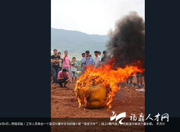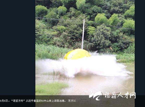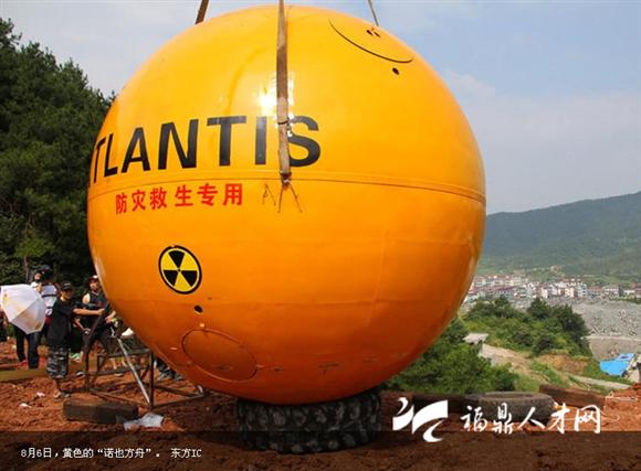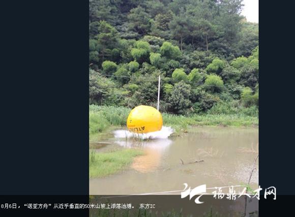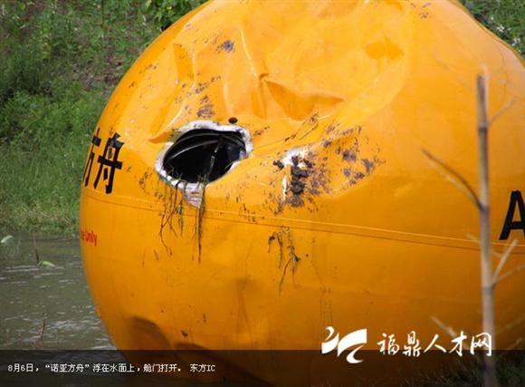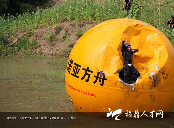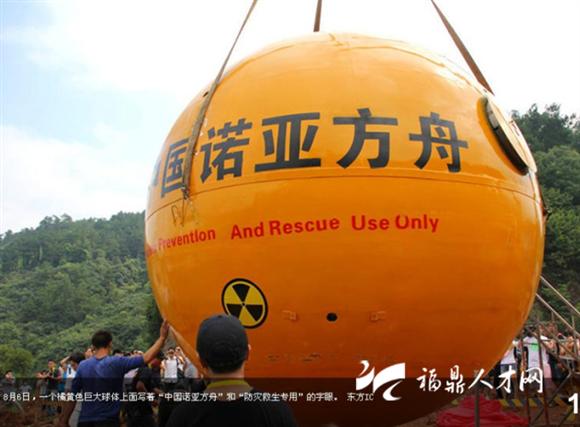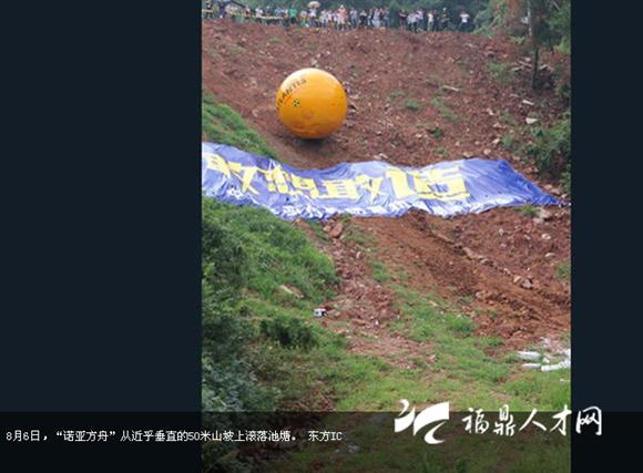 8月6日,義烏商人楊宗福“乘坐”自己發(fā)明的“諾亞方舟”從50米高的上坡上滾下來,向世人展示自己的發(fā)明。據(jù)悉,這個花費150萬制造的“諾亞方舟”直徑4米的橘黃色大圓球自重6噸,在水面上可以承載33噸。艙內(nèi)設有安全座椅、瞭望系統(tǒng)、通風系統(tǒng)和衛(wèi)生間等生活設施,還可以防撞、防輻射、防高溫。