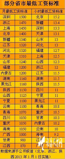 其中,北京和陜西自2012年1月1日上調(diào)最低工資后,將于2013年1月1日再次上調(diào),上調(diào)后北京最低工資標(biāo)準(zhǔn)由目前的每月1260元調(diào)整為1400元,陜西由1000元/月上調(diào)至1150元/月。而浙江省繼2011年4月1日之后也將在2013年1月1日再次上調(diào)最低工資標(biāo)準(zhǔn),最高檔標(biāo)準(zhǔn)由1310元漲到1470元。
