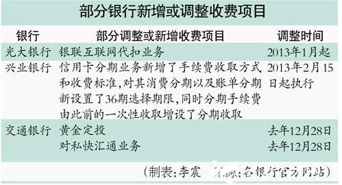 昨日,記者瀏覽各家銀行網(wǎng)站后得知,此次調(diào)整部分收費(fèi)項(xiàng)目的主要有光大、興業(yè)、浦發(fā)、交行等商業(yè)銀行。