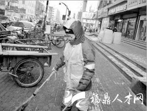 嚴寒中,錄取者已開始上崗,來往的行人不會探究這身工裝背后的研究生學歷