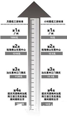 也就是說,調(diào)整后廣州1550元的月最低工資標(biāo)準(zhǔn)可能將是全國最高的。