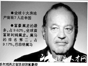 斯利姆的個人財產(chǎn)相比過去一年增加了700億元人民幣,他的財富主要來自于墨西哥美洲電信公司,礦和金融也是他的主要投資領(lǐng)域。