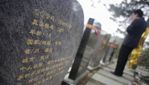 武漢石門峰名人文化園內(nèi),環(huán)保葬區(qū)部分墓志銘上留有QQ號(hào)碼和空間鏈接,數(shù)年間仍有人進(jìn)空間留言。