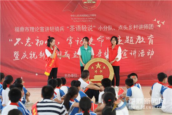 9月27日,點(diǎn)頭鎮(zhèn)組織福鼎市理論輕騎兵“茶語輕說”宣講小分隊(duì)、點(diǎn)頭鄉(xiāng)村講師團(tuán)赴點(diǎn)頭中心小學(xué)開展“不忘初心、牢記使命”主題教育暨慶祝新中國成立70周年校園宣講活動,受到廣大師生的歡迎。