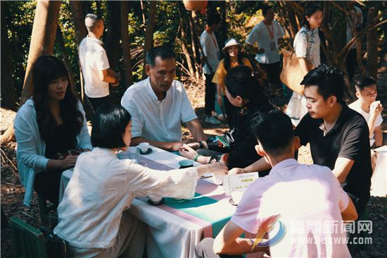 以茶會(huì)友,共敘豐收喜。茶會(huì)上,茶人們用一段《豐收賦》的朗誦為本次茶會(huì)奠定了喜悅的基調(diào),每位茶人帶上今年最好的一道茶分席圍坐,“溫杯、沖泡、分飲…”用精湛的茶技還原每一葉天然純凈的福鼎白茶滋味。來(lái)自全國(guó)各地的茶友們圍坐茶席前,細(xì)談、輕語(yǔ)在太姥山習(xí)習(xí)清風(fēng)敲打著的悅耳風(fēng)鈴聲中,蕩漾著福鼎白茶的芬芳和豐收的喜悅。