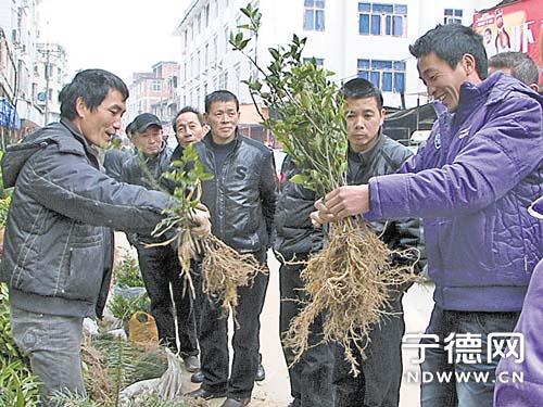 1月26日,正值春節(jié)期間,還正是人們走親訪友的時期,而且天氣寒冷,然而筆者在福鼎市點(diǎn)頭鎮(zhèn)海乾路的臨時苗木市場看到的是另一番購買果、樹苗的新景象,農(nóng)民朋友們成群結(jié)隊(duì)來趕墟買苗,形成一派熱熱鬧鬧的村鎮(zhèn)“苗墟”,生意紅火。