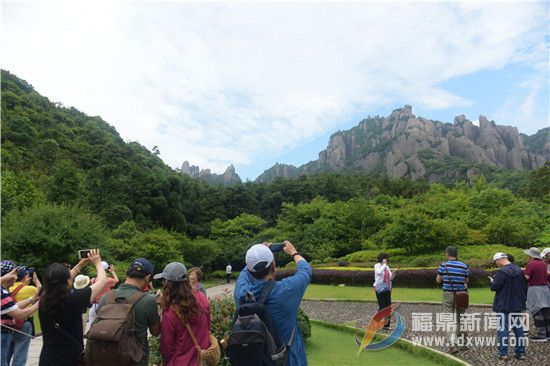 活動現(xiàn)場,太姥山撥開連日來的陰雨蒙蒙,在晴空下展露出毓秀鐘靈的絕美身姿。一批又一批游客帶著喜悅的笑容接踵而至。在夫妻峰廣場,游客們贊嘆自然神山壯麗之余,紛紛拿出手機(jī)合影打卡。一對又一對夫妻,在“夫妻峰”的見證下,用照片保存下甜蜜的愛情之旅。