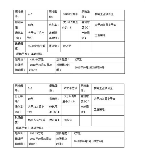 C-2號地塊:2012年10月20日00時00分至2012年10月29日16時00分;