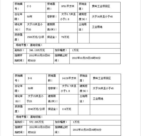 D-6號地塊:2012年10月20日00時00分至2012年10月29日16時00分;