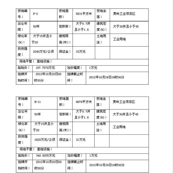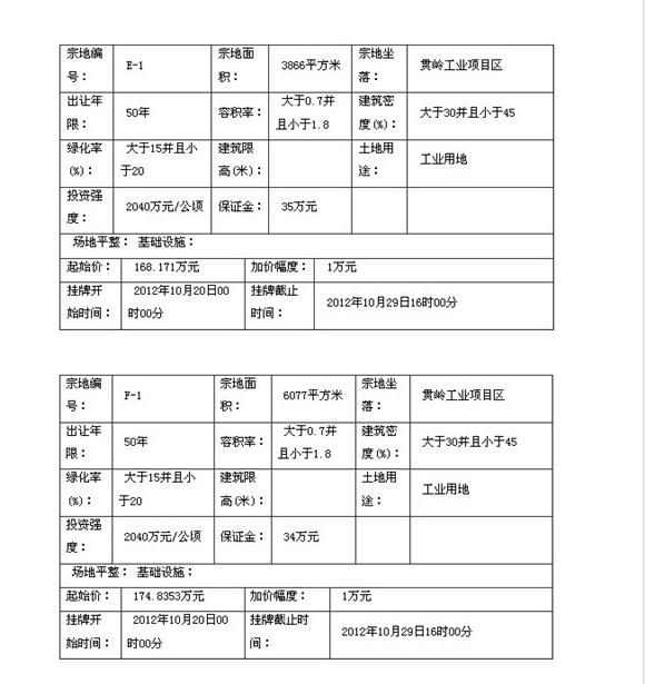 F-1號地塊:2012年10月20日00時00分至2012年10月29日16時00分;