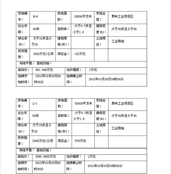 L-1號地塊:2012年10月20日00時00分至2012年10月29日16時00分;