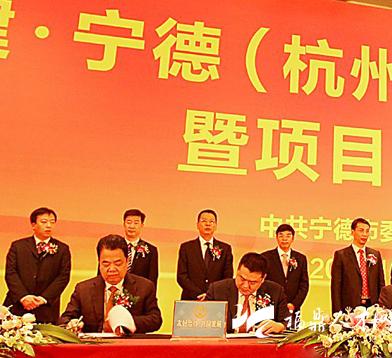 12月21日上午,寧德市委市政府在杭州市舉行寧德(杭州)投資環(huán)境說明會(huì)暨項(xiàng)目簽約儀式。福鼎市委書記陳其春(后排中)參加說明會(huì)并上臺(tái)見證我市項(xiàng)目的簽約。