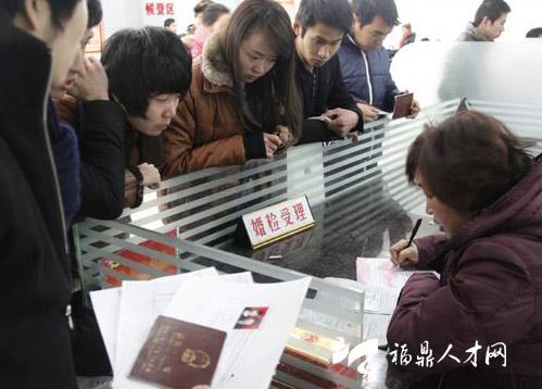 “希望我們的婚姻能夠像今天寓意的那樣,一生一世恩恩愛愛?!?013年1月4日這一天,全市有275對新人沖著愛你一生一世”寓意,而前往市婚姻登記處結(jié)婚。