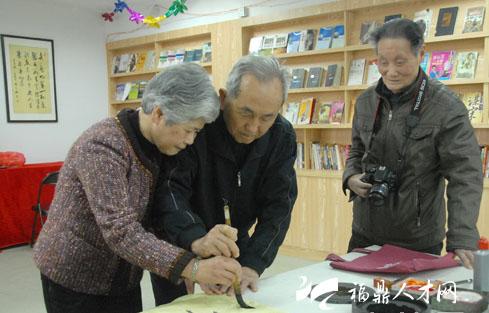 社區(qū)居家養(yǎng)老服務(wù)中心深受歡迎,老人們常在這里與街坊鄰居聊天、娛樂。圖為老人們在社區(qū)居家養(yǎng)老服務(wù)中心交流書法藝術(shù)。