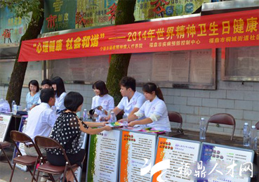 10月10日是第22個(gè)世界精神衛(wèi)生日。今年的活動主題為“心理健康,社會和諧”,旨在號召全社會積極參與精神衛(wèi)生工作,共同承擔(dān)防治責(zé)任和義務(wù),形成理解、接納、關(guān)愛精神障礙患者的社會氛圍,保護(hù)和促進(jìn)公眾心理健康。10日上午,我市精神病人療養(yǎng)院與市疾控中心、桐山衛(wèi)生服務(wù)中心聯(lián)合在市府路開展精神衛(wèi)生宣傳與義診活動。