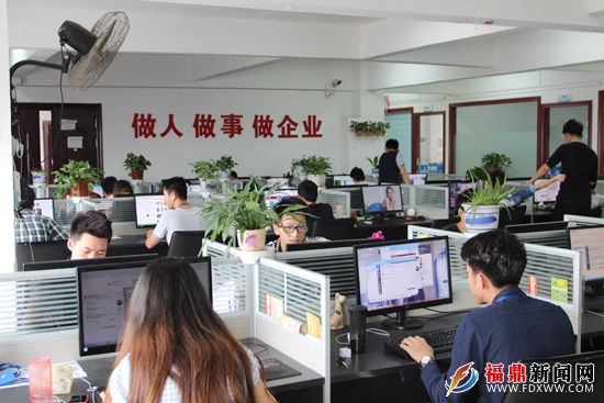 艾洛裳網(wǎng)絡(luò)有限公司的辦公區(qū),工作人員用網(wǎng)絡(luò)為客戶提供服務(wù)