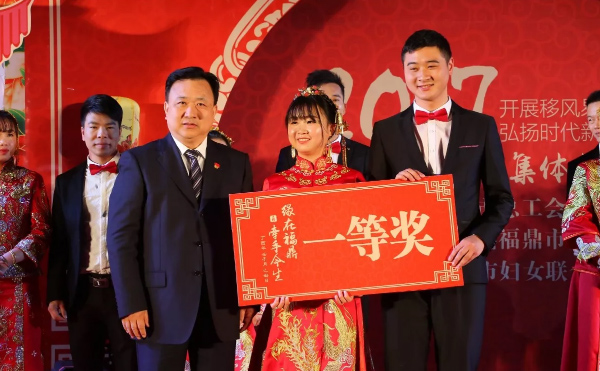 市總工會常務(wù)副主席朱愛鳳介紹說,現(xiàn)在福鼎的婚事越辦越大,給廣大職工帶來很大壓力。舉辦此次集體婚禮活動是為了響應(yīng)市委市政府移風(fēng)易俗的號召,呼吁大家能夠喜事簡辦,喜事新辦。