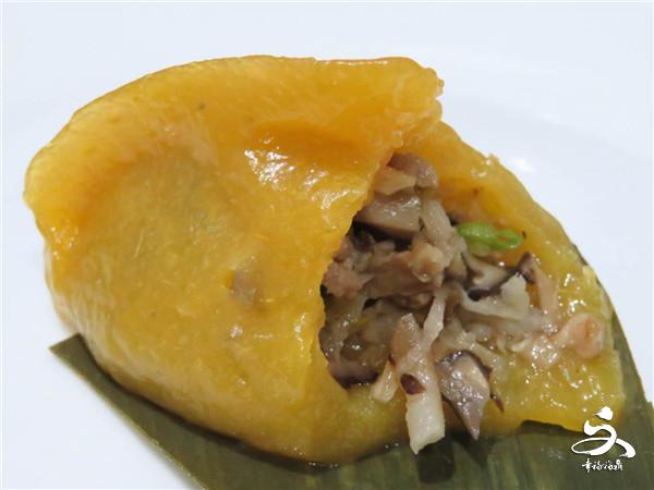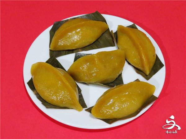 “地瓜(番薯)切皮洗凈煮熟,涼后拌上番薯粉攪勻,碾成泥狀做成長形餃子,放入紅糖或白糖、花生仁、芝麻、蔥頭油等做成的甜的餡,也可以放入肉、菜、香菇等做成的咸的餡兒,再放入蒸籠里蒸上15-20分鐘,便成了香噴噴的九穩(wěn)包?!辩娎蠋熃榻B“九穩(wěn)包”做法時(shí)看似輕描淡寫,實(shí)則包含十幾道的工序,做起來十分復(fù)雜。皮的厚薄和餡兒的多少,都十分體現(xiàn)制作人的手藝。在當(dāng)?shù)?,人們以能做九穩(wěn)包的家庭主婦為巧婦,逢年過節(jié)都要在明里暗里比較一番。九穩(wěn)包也要趁熱吃,不管是甜餡兒的,還是咸餡兒的,進(jìn)入你味蕾的首先就是濃濃的蒸熟的地瓜味兒,香甜可口,很有嚼勁兒。我個人偏好甜的,趁熱咬上一口,蔥油裹著花生仁、芝麻順入口中,在地瓜粉的中和下,甜而不膩,百吃不厭。小時(shí)候我見過最會吃的一位親戚,一口氣能吃二三十個。
