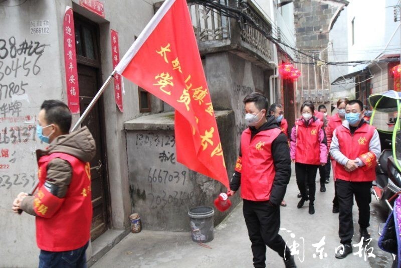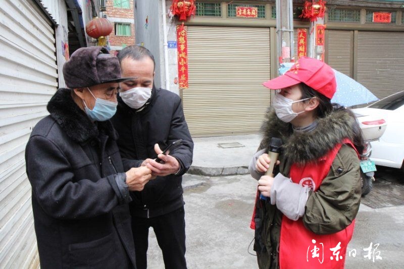 “各位阿公阿婆、叔叔伯伯、阿姑阿姨,過年好......”“鐺——”“溫州疫情蠻嚴重,疫情期間不接待,見面拜年手機代,微信紅包也實在,親友暫時莫來去,居家防護要做到,走訪溫州都取消,疫情結(jié)束再碰面......”“鐺——”2月8日,福鼎市太姥山鎮(zhèn)黨委宣傳委員吳潔昀帶領所包社區(qū)的兩委、黨員志愿者,戴著口罩、拿著喇叭和小鑼,走街串巷,宣傳防疫知識,勸導群眾不出門。