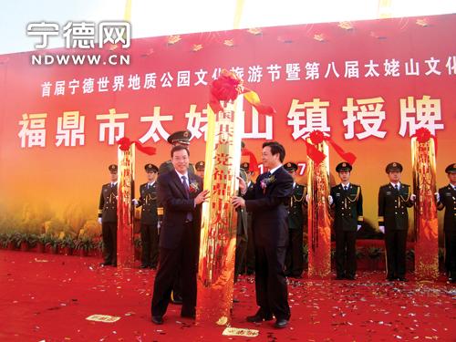 27日,首屆寧德世界地質公園文化旅游節(jié)暨第八屆中國·太姥山文化旅游節(jié)開幕。當天,世界地質公園太姥山所在地秦嶼鎮(zhèn)正式更名為太姥山鎮(zhèn),并舉行了授牌儀式。