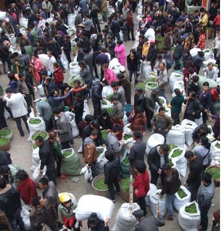 據(jù)福鼎市點頭鎮(zhèn)茶葉協(xié)會會長梅守善介紹,當前已是春茶采摘交易的高峰期,福鼎各鄉(xiāng)鎮(zhèn)當?shù)匾约跋计帧㈣蠘s、福安等周邊縣(市)的春茶也大批量涌到點頭閩浙邊貿(mào)茶花市場交易,近日內(nèi)茶青的日交易量還有增加的趨勢,目前每天已有200多噸春茶上市交易。