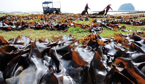 金周強(qiáng)告訴記者,海帶都是每年11、12月份放苗養(yǎng)殖的,直到隔年4、5月份收成。其間,只要每隔兩三天巡查一次,防止被漁船破壞即可。今年外地大部分養(yǎng)殖地區(qū)海帶上市相對(duì)比較遲,造成部分地區(qū)海帶緊缺,以致海帶價(jià)格被抬高,收購(gòu)商收購(gòu)生海帶的價(jià)格由去年的0.25元上升至0.35元,經(jīng)過(guò)高溫、烤干兩道工序加工后的海帶成品更是可達(dá)每斤18~20元,形勢(shì)可人!