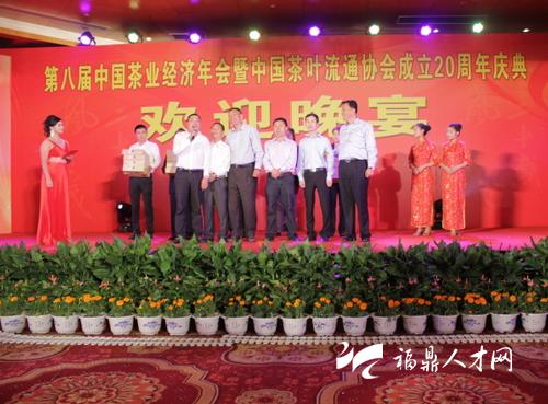 10月18日晚,第八屆中國茶業(yè)經(jīng)濟年會歡迎晚宴暨中國茶葉流通協(xié)會成立20周年慶典在福鼎金九龍大酒店隆重召開。中國茶葉流通協(xié)會會長劉環(huán)祥、中國茶葉流通協(xié)會常務副會長王慶、農(nóng)業(yè)部種植業(yè)司巡視員曾衍德、農(nóng)業(yè)部農(nóng)業(yè)產(chǎn)業(yè)化龍頭企業(yè)辦公室主任黃連貴、民政部民間組織管理局副局長劉振國等出席晚宴。