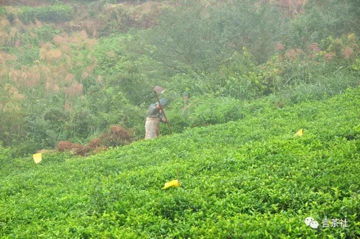 茶山很美,很壯闊,周邊環(huán)境無污染,是一個不可多得的生態(tài)有機茶園。茶山隨處可見物理除蟲以及人工除草。足見以“生態(tài)大健康”為發(fā)展策略的用心。