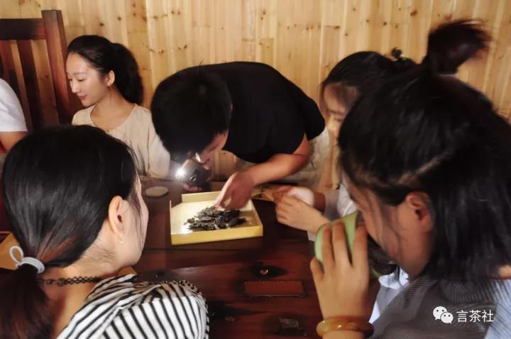 接下來是大家?guī)淼乃讲夭璺窒憝h(huán)節(jié)。嬋娟帶來一款2011年政和的老茶餅。大家踴躍討論著政和白茶與福鼎白茶的區(qū)別。從外形上看這款政和老白茶的芽頭偏白,香氣還是不錯的,而口感上卻比福鼎白茶淡了許多。小雷說到制作工藝也是不同的,政和白茶走水之后需關電回水,以至于芽頭上的水回到梗上,所以茶梗幾乎是黑的,這在新茶的表現上比較明顯。
