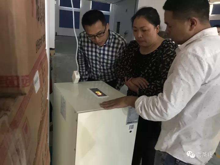 倉庫大門一打開,就可以看到濕度控制機,整齊排放的茶產(chǎn)品和吸濕的炭火堆,聞到迎面的純凈干茶香。