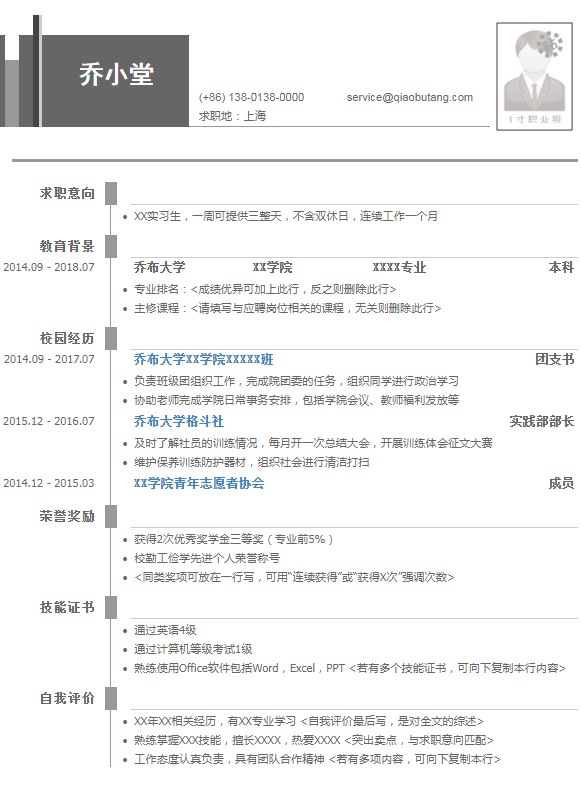 應(yīng)屆生找工作簡(jiǎn)歷模板